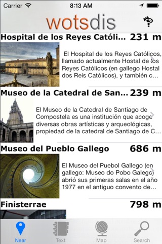 WotsDis Guia de Viaje España is the app you need if you are planning to visit Spain and you want to know where you are, where to find interesting places, or what is that wonderful building in front of you, but dont want to expend a lot of money in data roaming.