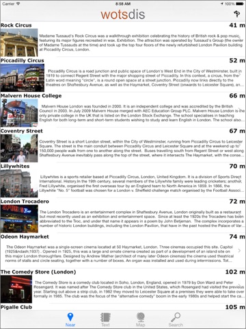 WotsDis Travel Guide London is the app you need if you are traveling to the beautiful City of London and you want to know where you are, where to find interesting places, or what is that wonderful building in front of you, but dont want to expend a lot of money in data roaming.