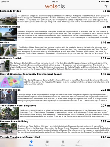 WotsDis Travel Guide Singapore is the app you need if you are traveling to the amazing City of Singapore and you want to know where you are, where to find interesting places, or what is that wonderful building in front of you, but dont want to expend a lot of money in data roaming.