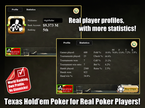Play against the best Texas Holdem poker players in the world and earn your ranking among the WPAS! All the features youd expect from a real poker game with a true focus on game play and poker itself.