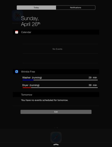 Wrinkle Free on Apple Watch allows you to view your timer states at a glance, start and stop timers, and receive notifications when your laundry is finished, all on Apple Watch.