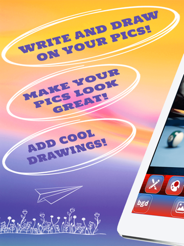 Put text on your pics and decorate them with interesting doodles to make your own customized art! With Write And Draw On Pics you can add special effects, filters as well as text and drawings! Add your favorite quotes or song lyrics over your selfies and post them on social network profiles you use! Go on and download this image editing software and you will have fun editing pics!