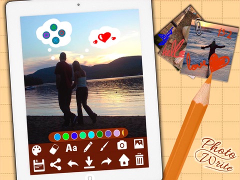 Writing on pictures with the fingers has never been so easy! Write down notes on the screen and draw on images with our photo and text editor.