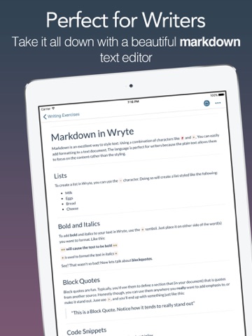 With Write.r, anyone can create beautiful markdown documents and notes. The app features a beautiful and streamlined interface, designed for iOS 9 and the latest devices. Your words are instantly synced to all your iOS devices in real time.