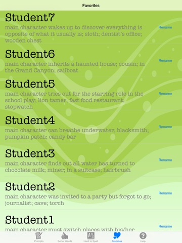 • Favorites - Save and name your favorites for an easy way to keep track of assigned prompts.