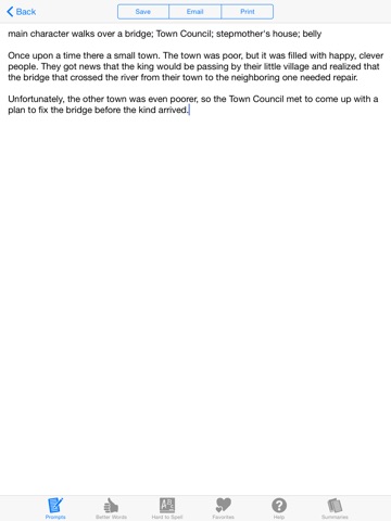 Once you have your prompt, click the Story button to start writing. You can send your story to anyone using the built-in email function.