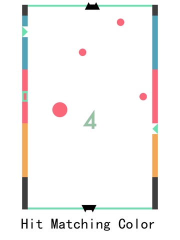 3) The shooters at the bottom and top are shooting small dotz at you. Hit a matching small dot and get 2 points. Hit the wrong color small dot and its game over.