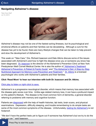 • Easily share stories and programs with family and friends via the “Share” button.