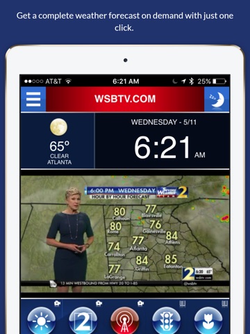 The WSB-TV Wake Up alarm clock app helps you start your day with constantly updated news headlines, weather forecasts and traffic for metro Atlanta – all with the Channel 2 Action News This Morning team.