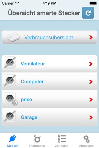 Schalten Sie ihre Elektrogeräte wie Fernseher, Hifi-Anlage oder die Beleuchtung mit der App ein oder aus – wo auch immer Sie sich befinden, rund um die Uhr.