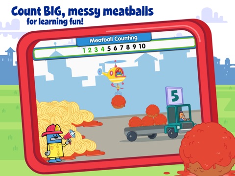 •Interactive, educational games that encourage kids to practice counting (with meatballs!) and hone early literacy skills.