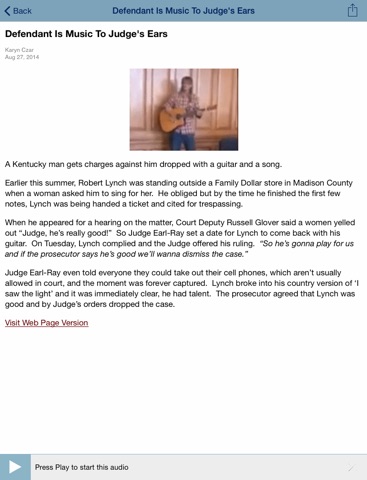 • The WUKY Public Radio App displays the web page associated with the program or story segment you are listening to On Demand so you can explore for more information.