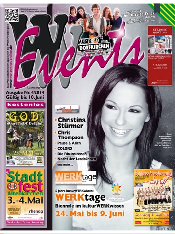 „Lieber live dabei, als nur davon gehört“ – so lautet das Motto des beliebten und auflagenstarken Veranstaltungsmagazins für den Westerwald. Bereits seit 1998 präsentiert sich WW-Events sowohl in Print-Form als auch online unter www.ww-events-online.de. Zusätzlich gibt es für alle, die kein Highlight verpassen möchten, den wöchentlichen WW-Events-Newsletter: Veranstaltungstipps auf einen Blick direkt ins E-Mail-Postfach!