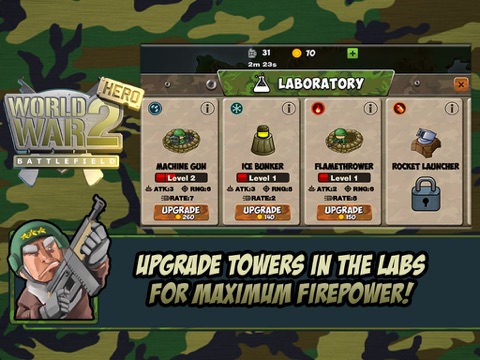 Each tower must built in the right area, because it will have a big impact to the war result. When the condition going bad or uncontrollable, you can call the back up squad by push the “missile” or “thunderbolt” button. Buumm! Instant kill! The Germany axis army come in various squad form combination like : land troop, air squadron, and water troop. When one enemy troop can pass through your defense, you will lose one of your heart bar.