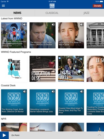 The WWNO Public Radio App allows you to listen to WWNO, pause and rewind the live audio, and view the program schedule for WWNO all at once! You can explore and listen to On Demand content whenever you want, share stories with your friends and wake up to WWNO with the alarm clock!