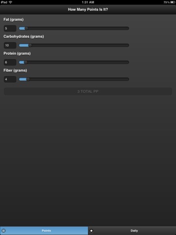 This app need to add a place where you can actually keep track of what you are for the day and the point value.