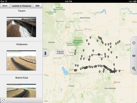 We have made it even easier to save your most used traffic cameras. With the new Routes feature, you can create a route for example Laramie to Cheyenne and add those specific cameras to it. Create as many routes as you like. The routes manager allows you to delete, rename and reorder your routes as you please.