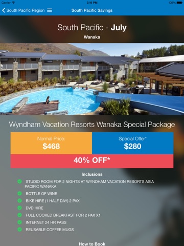 Download the Holiday & Save* app to confirm your attendance and access accommodation package deals with Wyndham Hotel Group resorts!