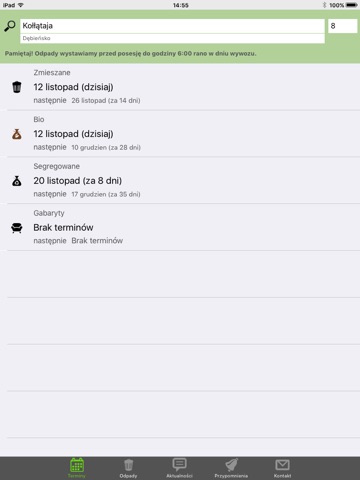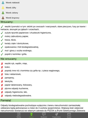 Dzięki aplikacji dowiesz się o terminach odbioru odpadów (zmieszanych, segregowanych, zielonych, wielkogabarytowych),