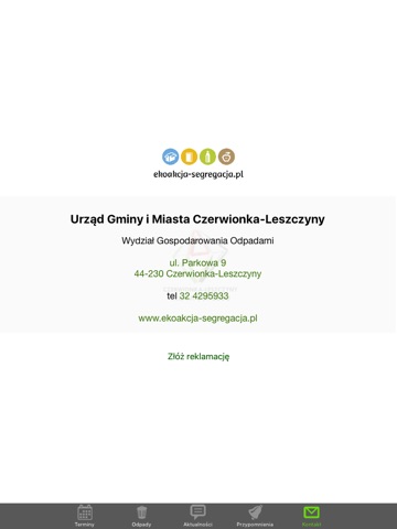 - danych kontaktowych Urzędu Miasta Czerwionka-Leszczyny.