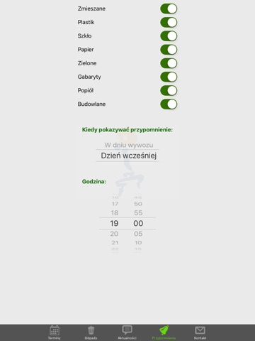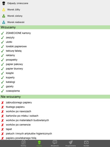 Dzięki aplikacji dowiesz się o terminach odbioru odpadów (zmieszanych, segregowanych, zielonych, wielkogabarytowych),