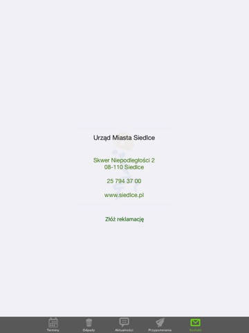 - danych kontaktowych Urzędu Miasta Siedlce.