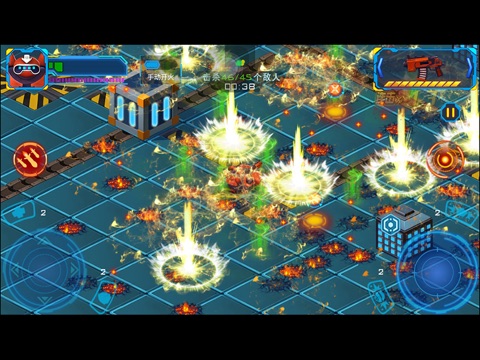 "X front" than to the Earth is alien infection background story, players play a biological robot, in order to restore infected the Earth, but with alien creatures to fight. Game game presented in the form of checkpoints, each level will require players to operate a robot to deal with four central attacking monsters. Click the button corresponding to the direction and shoot the enemy to attack, when to defeat all incoming enemies, levels can be passed. In the clearance process, you can also upgrade the characters, and guns to be strengthened.