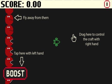 + Left hand - Tap the Boost button to make the spaceship move forward.