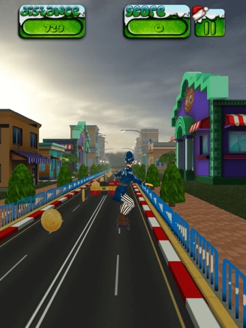 Ride your skateboard through the Village,City & Snow Zone - Skate & avoid various type obstacles and Collect Gifts & Coins.