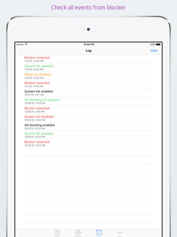 The application also contains a log containing all the events taking place in the blocker. You will always know for what reason blocker stopped or restarted.