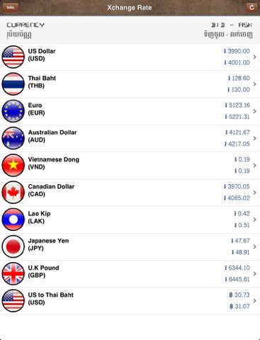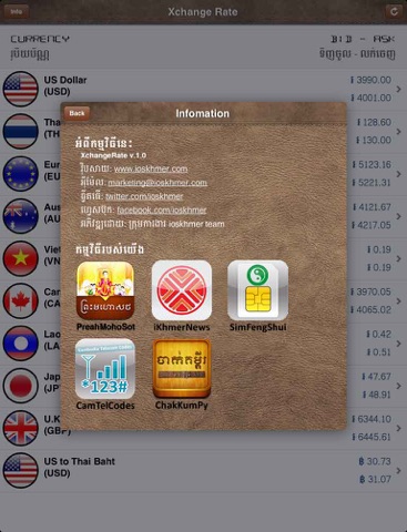 Really appreciate for this app especially for iphone 5 which let you able to see Khmer font in the app. Another cool feature of this app is its showing both selling rates and buying rates so we dont need to switch. cheers xD