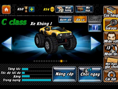 •Xế Siêu Hạng với hệ thống tính năng đồ sộ và lien tục được nâng cấp. Game cho phép bạn thay đổi nhân vật điều khiển xe với mỗi nhân vật đều có các kỹ năng đặc biệt khác nhau. Game cho bạn hệ thống xe đa dạng và phong phú cùng với những phụ kiện giúp bạn có thể Độ cho con xế của mình trở nên nuột nà, mạnh mẽ hơn.