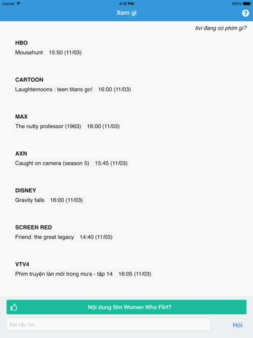 Xem gì là một công cụ hỗ trợ cho phép trả lời tự động các câu hỏi về phim ảnh, lịch chiếu rạp, và các chương trình TV.