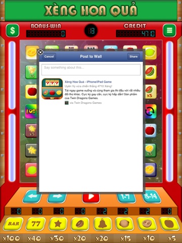 Tải Xèng Hoa Quả về chơi ngay hôm nay và giới thiệu cho bạn bè cùng biết nhé. Và đừng ngại đánh giá cũng như góp ý để Twin Dragons Games phát triển hơn.