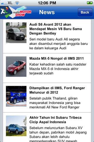 On the NEWS menu you will have realtime update from the exhibition and participating brands, also the free iphone4 giveaways from the exhibition. It also provides you with very handy tips for your vehicles.