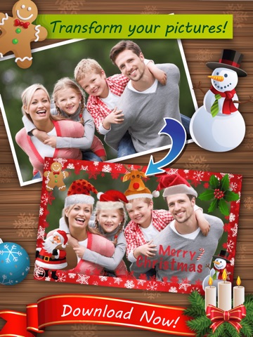 Add Xmas and New Year Hats, sticker, frame & fonts with Xmas Camera. This app offers over 50 different Xmas and New Year Hat , download it and enjoy with your friends and family, really fun!