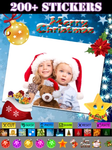 This app is designed for the users who like creating Xmas photos with freeform collages, cutouts, filters, borders, stickers, drawing and text. You can use this app to merge lots of photos into one photo through a very simple operation. he only limit is your imagination.