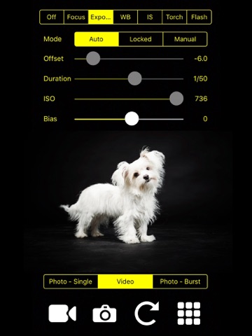 With predefined durations, tap the camera button to start exposure. Exposure will automatically stop when time runs up.