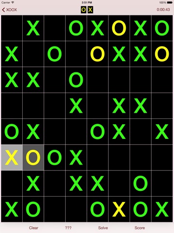 XOOX (sounds like zooks) is a logic game where each blank cell must be set to O or X.