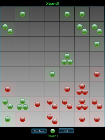 Simple yet addictive logical game in which you have to take, expand and take over the opponents fields until you own a whole board or the opponent is out of moves. This game can turn upside-down in a second due to its "chain reactions".