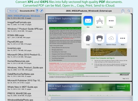 When dealing with documents from Windows, my only "print to disk" option is usually *.xps files. This app seems to open them just fine *and* lets me print them to an AirPrint-enabled printer. I am not sure what issues the other reviewers are having, but this works just fine as an "Open with..." target for xps documents attached to emails. The xps files that I am using are coming from Windows 7 - this app has opened them reliably for me. Maybe other XPS files are problematic. Being able to "Print to XPS" and then email stuff to my iPad is very nice, especially for things like travel documents and the like. I took a bit of a chance on this app, as there wasnt a single positive review. I am happy I did.