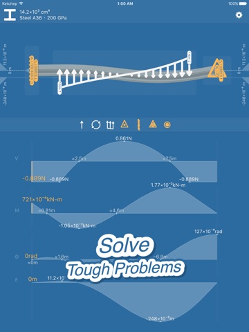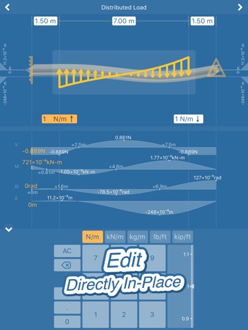 Great app! Easy to use and intuitive. I it would be great if loads could be entered in kN and kN/m. Also, to be able to save, put hinges would help me a lot. Still really effective app tho!