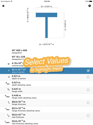 Includes most international steel sections, as well as some aluminum and wood shapes.