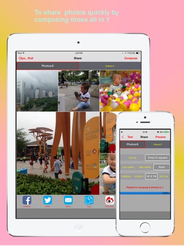 √.Compose multi photos in 1 to share quickly on your social networkings.