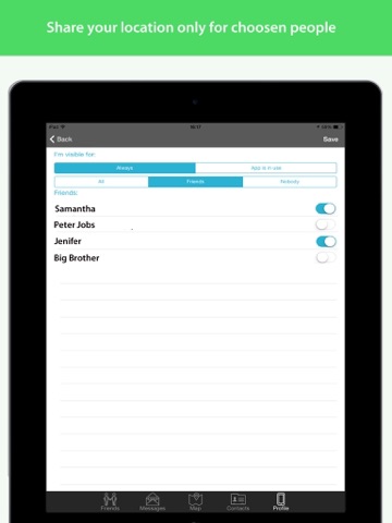 iMapp will help you track your friends and relatives who are connected to the service as well as assist you in finding a persons location by request, regardless of whether they have the app on their device installed.