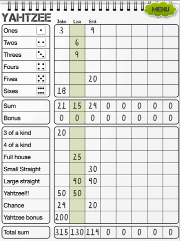 Straightforward app makes it easy to score Yahtzee. Perfect addition to game night.