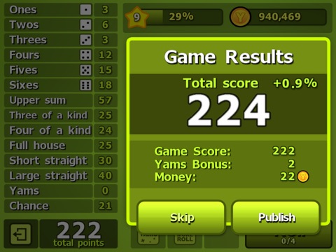 Le Yams, mélange parfait entre un poker et un jeu de dé. Lancer les dés, gardez les meilleurs, utilisez les boosters pour augmenter vos scores et gagnez les tournois hebdomadaires.