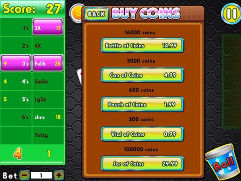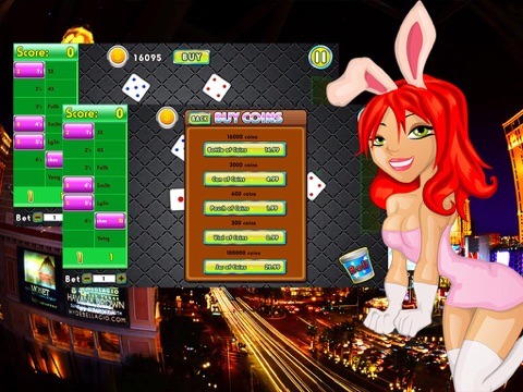 Test your skills in 13 rounds, with 3 rolls per hand. Winner scores by creating the best poker hand: 3 of a kind, 4 of a kind, straights, and so on…