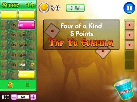 ````A Yatzy Jackpot Wild West Journey Top Dice Games of Gun Fire Blast in Vegas Casino Pro consists of 13 rounds. In each round, you roll the dice and score the result in 1 of 13 categories. You must score exactly once in each category. Skill and judgement are required as the game progresses and your options start to run out. The aim of the game is to get the biggest score you can from the 13 rounds.