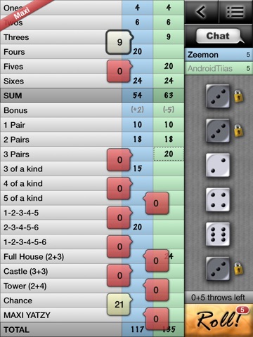 - 3 game modes: Classic, Maxi and American Yatzy.